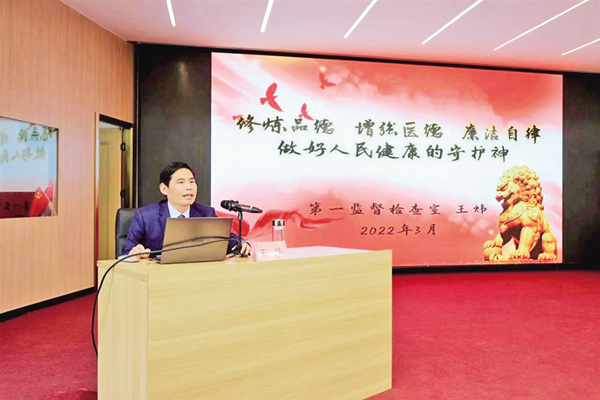 為了進一步深入推進清廉醫(yī)院建設(shè),打造一支政治素質(zhì)高、工作能力強、服務(wù)質(zhì)量優(yōu)、群眾反映好的醫(yī)療衛(wèi)生隊伍,努力營造風(fēng)清氣正、健康向上的政治生態(tài)和干事創(chuàng)業(yè)、擔(dān)當(dāng)作為的良好環(huán)境,醫(yī)院先后于3月16日、4月14日,組織召開了2023年黨建暨黨風(fēng)廉政建設(shè)工作推進會和醫(yī)療領(lǐng)域廉潔購銷暨警示教育廉政談話會。會議動員全員職工,凝聚共識、形成合力,積極踐行“忠誠、干凈、擔(dān)當(dāng)、學(xué)習(xí)、奉獻”工作標(biāo)準(zhǔn),嚴格落實廉潔從業(yè)“九項準(zhǔn)則”,全心全意為人民看好病、服好務(wù),為在中國式現(xiàn)代化道路上聚力建設(shè)幸福安康凝聚智慧和力量。