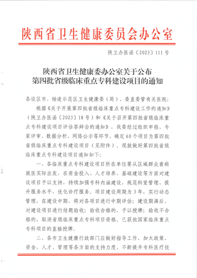 近日,陜西省衛(wèi)健委辦公室印發(fā)了《關(guān)于公布第四批省級臨床重點?平ㄔO(shè)項目的通知》,市中心醫(yī)院神經(jīng)外科、傳染病科和檢驗醫(yī)學(xué)科入選第四批省級臨床重點?平ㄔO(shè)項目。截至目前,我院共有省級臨床重點專科2個(心血管內(nèi)科、新生兒科),省級臨床重點專科建設(shè)項目10個(神經(jīng)內(nèi)科、呼吸與危重癥醫(yī)學(xué)科、泌尿外科、醫(yī)學(xué)影像科、消化內(nèi)科、麻醉科、護(hù)理學(xué)、神經(jīng)外科、傳染病科、檢驗醫(yī)學(xué)科)。