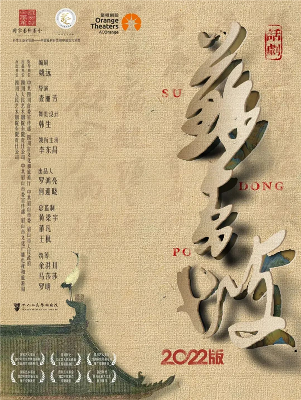 話劇《蘇東坡》在舞臺上突破了原有的戲劇框架,創(chuàng)造性地融入了“幫腔”與“司鼓”的川劇構成,更通過舞美與串場角色,構成了匠心獨具的藝術空間,在文本的時空性、戲劇傳統(tǒng)的融合性、人物塑造的獨特性以及戲劇本身的地域文化特性上完成了突破與超越。