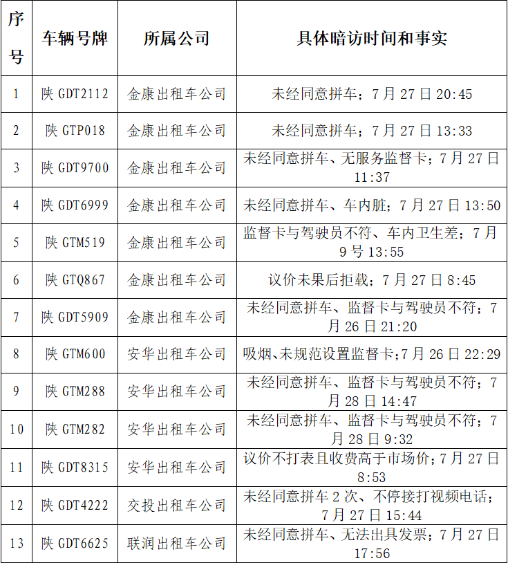 附:中心城區(qū)出租車行業(yè)暗訪檢查結(jié)果