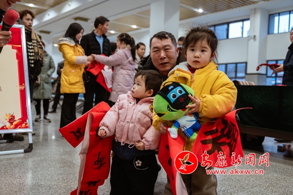 活動(dòng)中,“驛路安康”愛心服務(wù)熱線工作人員身著安安、康康、龍辰辰人偶服,穿梭在人群中,一邊分發(fā)福字、對(duì)聯(lián),一邊與旅客們互動(dòng)交流、合影留念。他們現(xiàn)場(chǎng)扶老攜幼、答疑解惑,熱情周到的服務(wù)溫暖了在場(chǎng)每一名旅客。