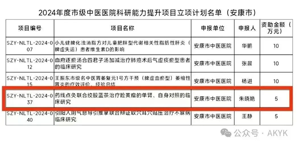 立項二:藥線點(diǎn)灸聯(lián)合絞股藍(lán)茶在黃素瘤應(yīng)用項目獲陜西省中管局市級中醫(yī)醫(yī)院科研能力提升項目(朱曉艷、袁銘悅)