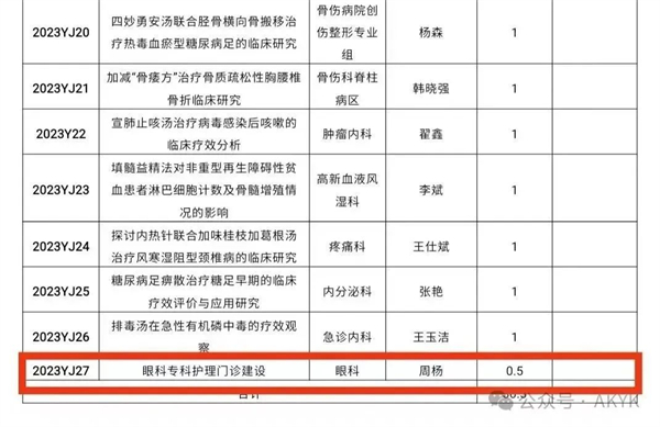 立項四:眼科?谱o(hù)理門診建設(shè)與臨床實踐研究(周楊)