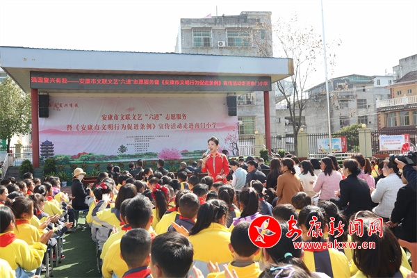 本網(wǎng)訊(見習(xí)記者 張璇)3月20日,由市創(chuàng)文辦、市文聯(lián)主辦的“強(qiáng)國復(fù)興有我”安康市文聯(lián)文藝“六進(jìn)”志愿服務(wù)暨《安康市文明行為促進(jìn)條例》宣傳活動(dòng)在漢濱區(qū)南門小學(xué)舉行。