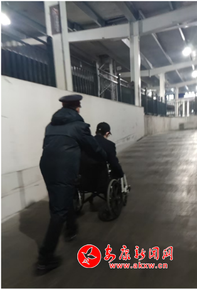 當(dāng)T248次列車抵達(dá)安康后,為了照顧陳先生下車,列車長與安康站工作人員提前協(xié)調(diào),列車?空九_(tái)后。列車員扶著陳先生下車,列車長已經(jīng)和安康站工作人員推著輪椅等候在12車門口,安康站工作人員一路用輪椅推著陳先生,并將陳先生送至出租車,叮囑出租車司機(jī)將陳先生及家人安全送到家。