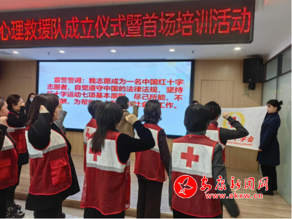為助力健康安康建設(shè),進(jìn)一步加強(qiáng)安康市紅十字心理救援能力建設(shè),提升廣大群眾心理健康水平,2024年12月31日上午,安康市紅十字會聯(lián)合市人民醫(yī)院舉辦安康市紅十字心理救援隊(duì)成立儀式暨首場培訓(xùn)活動。圖為紅十字心理救援隊(duì)隊(duì)員現(xiàn)場宣誓和開展首場培訓(xùn)。(鄭時根 攝) Cuy安康新聞網(wǎng)
