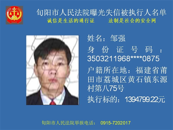 曝光失信 | 旬陽(yáng)法院發(fā)布2024年第一期失信被執(zhí)行人名單