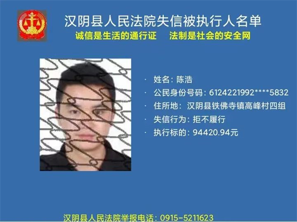 曝光失信 | 漢陰法院失信被執(zhí)行人曝光名單 (2022年第二批)