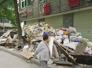 本報(bào)訊(記者 周健 文/圖)9月23日上午,有市民反映:在安康城區(qū)金州廣場(chǎng)旁邊的漢寧路上,有一家茶樓門前的人行道上垃圾堆成了山,既污染了環(huán)境,又影響行人通行……
