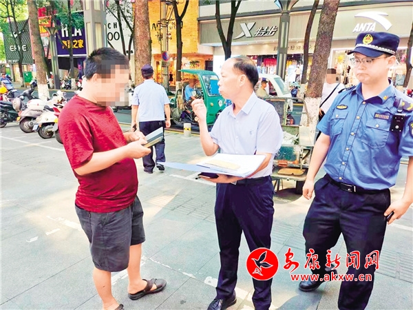 7月18日上午,漢濱城管執(zhí)法分局“‘痰’吐文雅,舉‘紙’得體”糾治組在金州路、白天鵝廣場(chǎng)以及公交車站附近巡查值守,對(duì)取證發(fā)現(xiàn)的隨地吐痰……