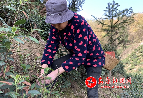 春風(fēng)送暖,又吹綠了茶山。天才漸亮,瀛湖鎮(zhèn)橋興村十二組的楊明芳,就拎著竹籃,小心翼翼的爬上陡峭的茶山上,細心尋找綠葉中探出的鮮葉,將綠油油的嫩芽采摘進竹籃里。茶葉已成為了瀛湖鎮(zhèn)橋興村和火星村茶農(nóng)們的致富之路。