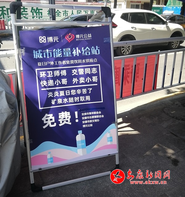 據(jù)了解,此次活動(dòng)從7月22日陸續(xù)展開,至8月31日結(jié)束,愛心冰柜投放8個(gè)地點(diǎn),分別是博元幸福城售樓部、高新管委會(huì)門口、高新幼兒園門口、江北安康濱江大道(扶貧開發(fā)局對面)、影劇院、大橋路(信合廣場對面)、安康中學(xué)(衛(wèi)校十字)、大千印象城,礦泉水每天每個(gè)點(diǎn)投放8箱左右。
