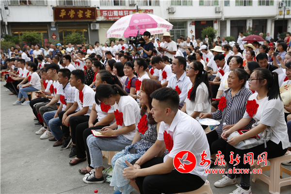 72名本科上線學生和家長佩戴著大紅花端坐在廣場接受全鎮(zhèn)鄉(xiāng)親們的祝福。老縣鎮(zhèn)黨委為金榜題名的學子頒發(fā)榮譽證書和獎金,同時,學生家長在“不收升學禮、不辦升學宴”承諾簽名墻前,簽下承諾簽名。在感恩父母環(huán)節(jié),父母與孩子深情相擁,他們真切的語言使整個會場充滿愛與感動。