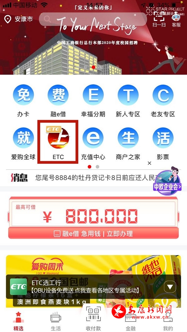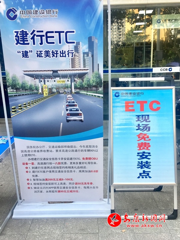 隨后,記者來(lái)到了中國(guó)銀行安康分行,發(fā)現(xiàn)該行為了鼓勵(lì)車主辦理ETC,除了國(guó)家規(guī)定優(yōu)惠政策外,也推出有安裝折扣活動(dòng)。