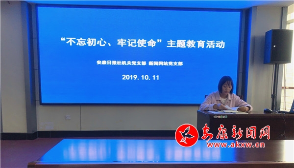 本網(wǎng)訊 (記者 郭倩)初心即情懷,使命乃擔(dān)當(dāng)。初心表達(dá)價值追求,使命體現(xiàn)奮斗目標(biāo)。10月11日上午,安康日報社機關(guān)支部與安康新聞網(wǎng)站支部聯(lián)合開展“不忘初心、牢記使命”主題教育活動,以“找回初心”為號召,以強化宗旨意識和理想信念為目的,立足崗位,“教、學(xué)”相融合,同步提升新聞采編業(yè)務(wù)專業(yè)技能和綜合業(yè)務(wù)能力,多樣形式開展好主題教育活動。