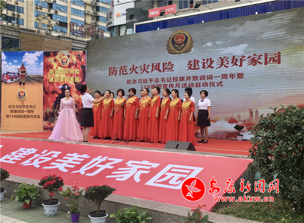 活動現(xiàn)場,相關(guān)負(fù)責(zé)人宣讀“社區(qū)消防宣傳大使”獲評名單并為十名“社區(qū)消防宣傳大使”頒發(fā)了聘書,F(xiàn)場人員先后觀看了大型城市商業(yè)綜合體滅火救援演練短片、成品油庫突發(fā)險情消防救援演練短片。相關(guān)消防人員進(jìn)行了消防救援設(shè)備展示,向觀眾展示了消防無人機(jī)等消防救援設(shè)備。安康市詩詞協(xié)會朗誦藝術(shù)社、社區(qū)群眾先后表演了詩朗誦《永恒的信念》和合唱《山丹丹花開紅艷艷 我和我的祖國》。隨后,相關(guān)工作人員為現(xiàn)場群眾發(fā)放了消防安全明白卡、消防安全知識手冊等各類消防宣傳資料。