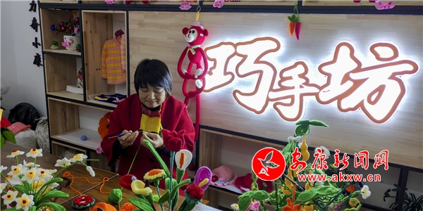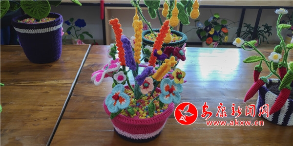 走進(jìn)旬陽(yáng)縣城關(guān)鎮(zhèn)老城社區(qū),一個(gè)專(zhuān)為老年人打造的 “巧手坊”很是吸引人。溫馨的燈光,溫暖的房間,桌子上、架子上擺滿了百合、菊花、鴻運(yùn)當(dāng)頭等手工藝編織品,都是普通的毛線編織而成。若不仔細(xì)看,這些“綠植”和“盆栽”足能以假亂真。