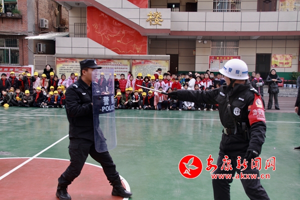 師生們在寓教于樂的過程中,進(jìn)一步增強(qiáng)了安全防范意識和面對突發(fā)情況的處置能力;顒又,特警們還對校園護(hù)校隊的隊員們進(jìn)行了安全知識培訓(xùn),并就防暴盾、防暴叉等安全設(shè)備的正確使用做了詳細(xì)講解和模擬演示。
