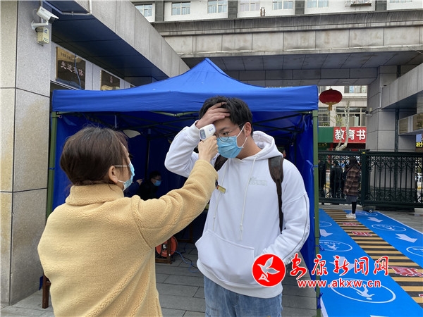 記者在安康中學(xué)校園外觀察到,每個(gè)人都戴著口罩,每隔幾步都會(huì)有工作人員和老師對(duì)學(xué)生進(jìn)行引導(dǎo),幫助學(xué)生完成相關(guān)入校流程,提醒學(xué)生彼此距離盡量保持在一米以上,保持安全距離,確保進(jìn)校有序安全。在校門口內(nèi),擺放有熱成像紅外線人體測(cè)溫儀,每個(gè)進(jìn)入校園的同學(xué)體溫?cái)?shù)據(jù)會(huì)自動(dòng)顯示在監(jiān)測(cè)人員的電腦上,體溫是否異常,一目了然。對(duì)于體溫有異常的,工作人員會(huì)拿額溫計(jì)在進(jìn)行二次測(cè)量,確保不漏一人。