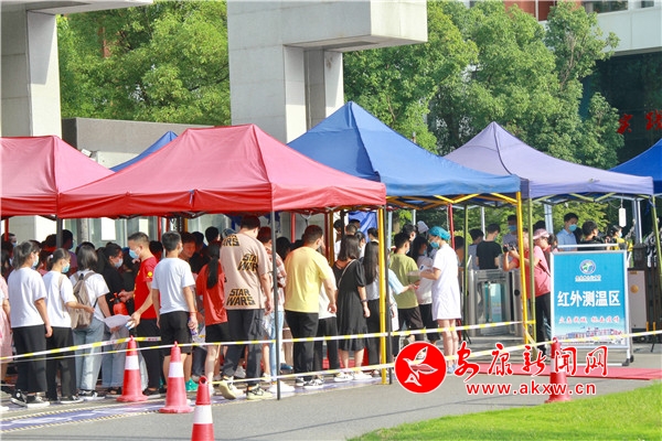 相較于往年,今年的考生入場(chǎng)更加嚴(yán)格,紅外線測(cè)溫儀顯示屏出現(xiàn)一串串的數(shù)字,工作人員認(rèn)真細(xì)致地盯著每個(gè)數(shù)字。工作人員們按照統(tǒng)一部署和安全要求,遵循“健康第一”、“安全第一”的原則,加強(qiáng)考試安全保障組織和管理,扎實(shí)細(xì)致做好考前各項(xiàng)準(zhǔn)備工作,努力為考生們的健康安全保駕護(hù)航。