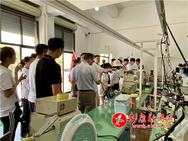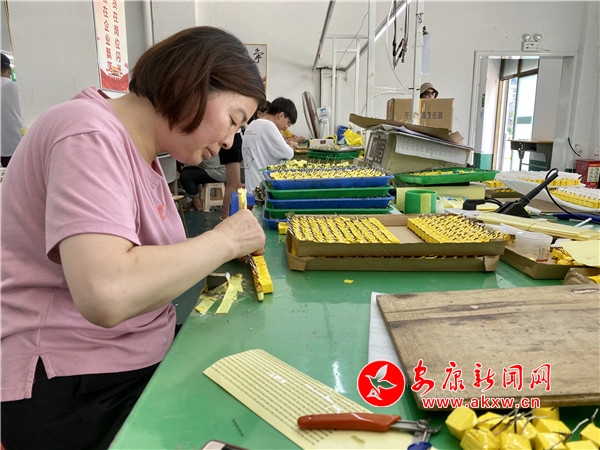 采訪團(tuán)一行來(lái)到平利縣老縣鎮(zhèn)錦屏社區(qū),社區(qū)四個(gè)工廠內(nèi)100多名工人正在生產(chǎn)勞作。
