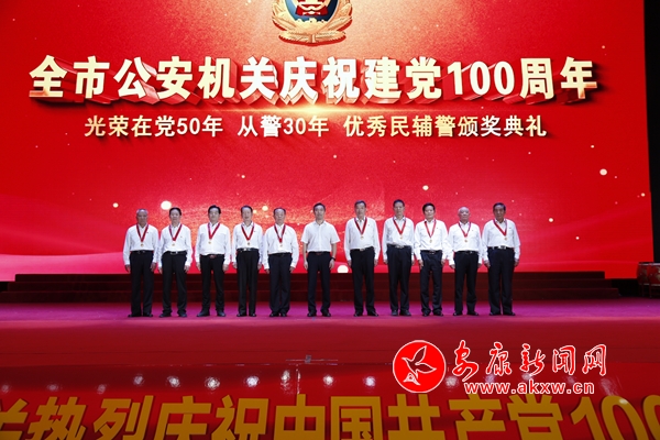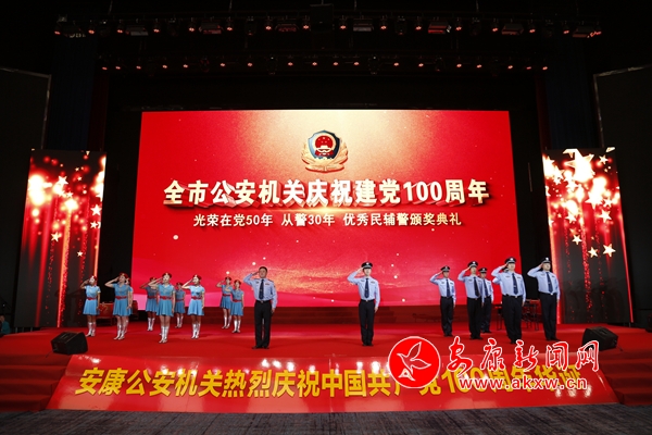 本次活動旨在全面展示全市公安隊伍教育整頓成果成效,大力弘揚公安英模精神,宣傳表彰隊伍中涌現出來的先進典型,凝聚警心、鼓舞士氣,激發(fā)廣大民警全力以赴做好保安全、護穩(wěn)定、抓改革、促發(fā)展各項工作熱情;顒臃譃榘矊幙堤⒗斡浭姑、不忘初心三個篇章,一曲曲高昂的贊歌,一幕幕鮮活的畫面,一個個感人的故事,生動再現了中國共產黨建黨100年來,矢志踐行初心使命,一路披荊斬棘、篳路藍縷,錨定奮斗目標,創(chuàng)造輝煌開辟未來的壯麗詩篇;形象展示了安康公安機關和廣大民輔警牢記初心使命,服務中心大局,扎實推進黨史學習教育和公安隊伍教育整頓,忠誠履職,砥礪奮進的良好形象;顒又,與會領導向優(yōu)秀民輔警頒發(fā)了獎杯,向“光榮在黨50年”代表頒發(fā)了勛章,向“從警30年”代表頒發(fā)了紀念章。