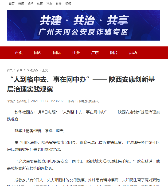 本網(wǎng)訊(實(shí)習(xí)記者 趙漪湉)11月8日,新華社刊發(fā)記者邵瑞、張斌、薛天采寫(xiě)的稿件《“人到格中去、事在網(wǎng)中辦”——陜西安康創(chuàng)新基層治理實(shí)踐觀察》,聚焦我市創(chuàng)新建立的“321”基層治理模式。