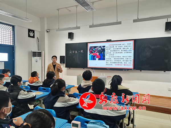 走進(jìn)漢濱初中高新校區(qū)初一年級(jí)23班,語(yǔ)文教師劉麗以“‘虎’力全開(kāi),做最好的自己”為題,為學(xué)生們帶來(lái)了“開(kāi)學(xué)第一課”。她以經(jīng)典詩(shī)歌《做最好的自己》為切入點(diǎn),隨后通過(guò)課件展示了我國(guó)冰雪項(xiàng)目運(yùn)動(dòng)員谷愛(ài)凌、徐夢(mèng)桃、金博洋等人在冬奧會(huì)取得的優(yōu)異成績(jī),深入挖掘成績(jī)背后他們拼搏奮發(fā)的冬奧精神,引發(fā)了學(xué)生們熱烈響應(yīng),紛紛舉手表達(dá)自己的觀看冬奧會(huì)的感悟體會(huì)。