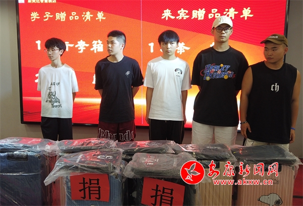 此次捐贈活動由漢濱區(qū)關(guān)廟鎮(zhèn)轄區(qū)斯美達智慧酒店發(fā)起,長安銀行漢濱支行、安康金鑫新能源有限公司、安康龍王泉有限公司等企業(yè)共同出資,捐贈行李箱、書包、水杯等物品價值合計約6萬余元。