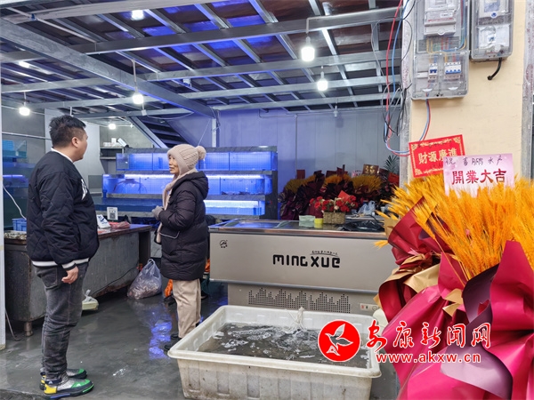 走進(jìn)水產(chǎn)品區(qū)域,店鋪里的蟹、蝦、貝等海鮮貨品齊全,價(jià)格一一寫在魚缸上。購(gòu)買蝦、蟹的顧客陳女士說(shuō),“我之前在興安菜市場(chǎng)的時(shí)候就喜歡在他家買,但原來(lái)那邊環(huán)境不太好,經(jīng)常人都下不去腳,現(xiàn)在店鋪周圍都很干凈。”