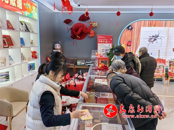 在本次郵票發(fā)行之際,安康郵政分公司將金州路郵政支局創(chuàng)新打造為全國首家“龍年生肖+毛玩文創(chuàng)”主題郵局,全面展示生肖“龍”文創(chuàng)產(chǎn)品,郵票、郵品、生肖貴金屬、生肖毛玩等,讓客戶一站式體驗購買到心儀的禮物;顒觾x式結束后,與會嘉賓們來到全國首家“龍年生肖+毛玩文創(chuàng)”主題郵局參觀打卡,互動體驗。