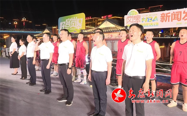 伴隨著一曲歡快的舞蹈《出水芙蓉》,新聞發(fā)布會正式拉開序幕。隨后,特色各異的文藝節(jié)目穿插進(jìn)行,舞蹈《活力寶貝》和歌曲《歡迎你到嵐皋來》,將現(xiàn)場氛圍引入一陣陣熱潮。第二屆巴山漢水“陜西村BA”體旅促商貿(mào)活動組委會各工作組組長、當(dāng)?shù)厍蜿牶屠怖碴牊崃叶终嬲\地發(fā)出賽事宣言:“一座城服務(wù)一個人,好客嵐皋歡迎您!”。