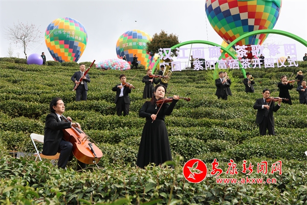 開園儀式有茶山實(shí)景演藝、紫陽民歌聯(lián)唱、祭茶神儀式、華服秀等。上午10時,開園儀式在沉浸式交響樂《春之聲》中浪漫開場,樂團(tuán)成員分布在茶園間,音符隨山風(fēng)流淌,樂聲與茶山風(fēng)光交相輝映,觀眾置身茶園,仿若與自然共譜春之樂章。茶山大秀《生生不息》以天地為幕、茶園為臺,采茶號子響徹山谷,7位紫陽民歌手帶來的聯(lián)唱《山河共鳴》,以原生態(tài)唱腔配以舞蹈演員的靈動演繹,唱響茶鄉(xiāng)人民對自然的敬畏與生活的熱愛。整場演出高潮迭起、亮點(diǎn)紛呈,令嘉賓和游客們流連忘返。