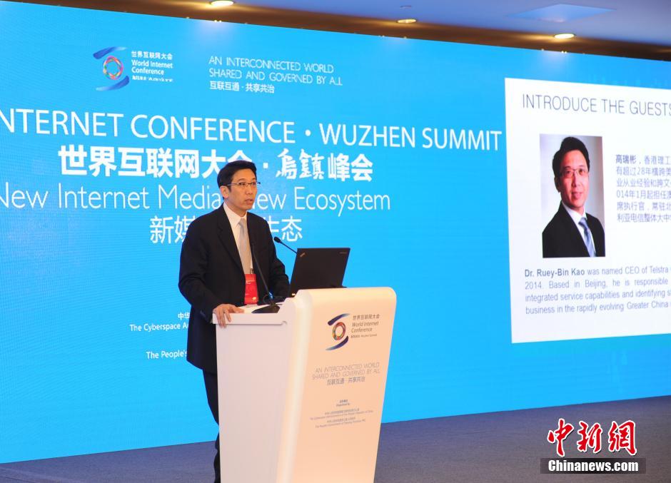 11月19日,澳大利亞電信大中華區(qū)CEO高瑞彬在烏鎮(zhèn)舉行的首屆世界互聯(lián)網(wǎng)大會(huì)新媒體分論壇上發(fā)言。當(dāng)天,世界互聯(lián)網(wǎng)大會(huì)在浙江烏鎮(zhèn)拉開(kāi)帷幕。 中新社發(fā) 李晨韻 攝aa5安康新聞網(wǎng)