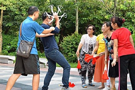小伙創(chuàng)意無人機(jī)送月餅劵給女友 遭大媽哄搶