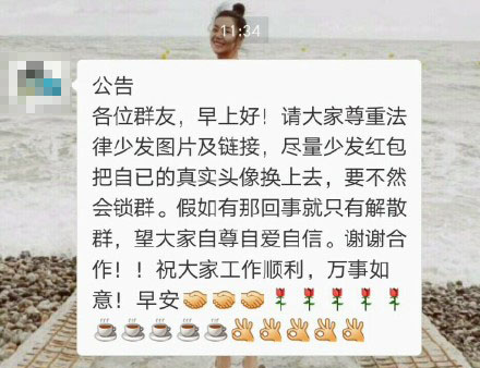 【傳聞】有桂林網(wǎng)民表示收到了一條“中國網(wǎng)絡(luò)監(jiān)控在清理整頓,要求微信群友將頭像更換為個人真實頭像,否則會被鎖群,群成員的手機(jī)號也會被控制”的消息。