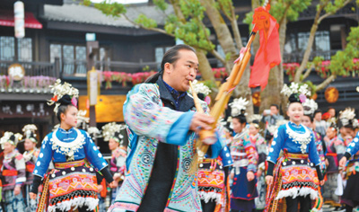 12月2日,貴州省黔東南苗族侗族自治州丹寨縣舉行盛大的苗族服飾展演巡游活動,迎接一年一度的苗族祭尤節(jié),全縣8個不同支系的苗族同胞身著盛裝,齊聚丹寨,向海內(nèi)外游客展示苗族盛裝服飾魅力!凹烙裙(jié)”苗語叫“農(nóng)尤”,“農(nóng)”意為吃或祭,“尤”為人名,即苗族九黎部落的首領(lǐng)蚩尤!凹烙裙(jié)”在2008年3月入選貴州省第二批非物質(zhì)文化遺產(chǎn)名錄。