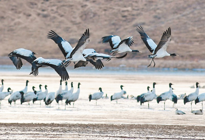 林周縣是著名的黑頸鶴越冬地,每年10月中旬開始,有大批黑頸鶴遷徙到此。據(jù)介紹,2017年12月,林周縣黑頸鶴數(shù)量穩(wěn)定在1700只左右,最高達(dá)2000只左右。VSp安康新聞網(wǎng)