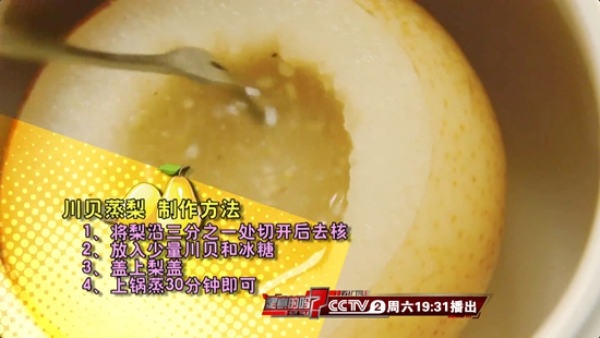 除了煮梨水,上鍋蒸也是非常好的方法。把梨從頂部切開后去核,放入少量川貝和冰糖,上鍋蒸30分鐘。出鍋后梨汁梨肉一起吃,化痰止咳效果也很好。但一定要注意,無論是川貝煮梨水還是川貝蒸梨,只對陰虛肺熱和風燥傷肺引起的干咳治療效果明顯。同時專家也提醒大家,食療最多三日,如果咳嗽持續(xù)沒有緩解,還是要及時就醫(yī),以免耽誤病情。(孝金波、王亞靜 整理)