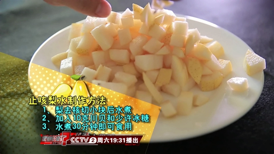 劉琳告訴我們:“梨有秋梨,雪花梨,鴨梨等,通常情況下都可以,但其中以雪花梨為最優(yōu)。選擇梨時應盡可能選擇梨皮較厚且較粗糙的,因為梨皮作為藥材的治療作用是不可小覷的。加工過程中應保留梨皮,去籽,將梨切為小塊,然后配以少許川貝、冰糖一起放入水中煮至半小時,即可飲用!