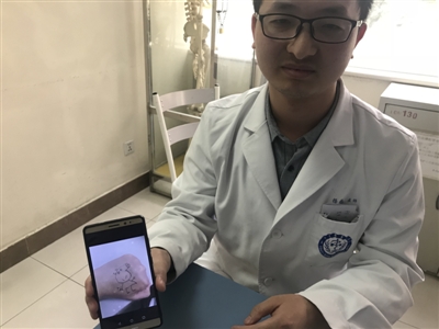 “偶然間,發(fā)現(xiàn)有小朋友的襪子忘在診室了,粉紅色的襪子上印著小豬佩奇!睏罾诨貞。對(duì)于小豬佩奇,楊磊并不陌生,家里已經(jīng)有了小朋友,小豬佩奇是楊磊小孩最喜歡的卡通人物之一。楊磊靈機(jī)一動(dòng),決定在左手手背上畫一個(gè)小豬佩奇。