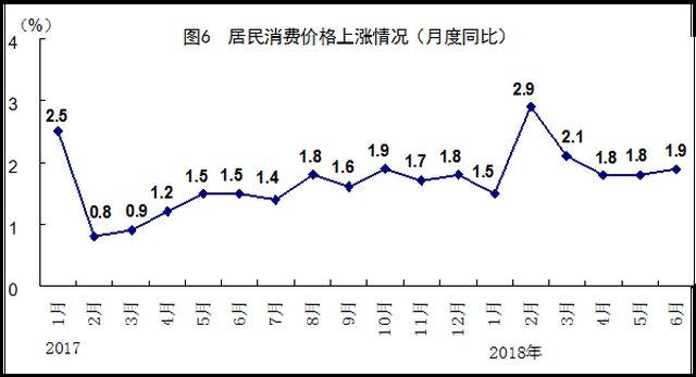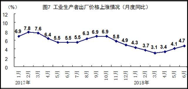 上半年,全國居民消費價格同比上漲2.0%,漲幅比一季度回落0.1個百分點。分類別看,食品煙酒價格同比上漲1.4%,衣著上漲1.1%,居住上漲2.3%,生活用品及服務上漲1.6%,交通和通信上漲1.2%,教育文化和娛樂上漲2.1%,醫(yī)療保健上漲5.5%,其他用品和服務上漲1.1%。6月份,全國居民消費價格同比上漲1.9%,漲幅比上月擴大0.1個百分點,環(huán)比下降0.1%。上半年,全國工業(yè)生產(chǎn)者出廠價格同比上漲3.9%,漲幅比一季度擴大0.2個百分點;全國工業(yè)生產(chǎn)者購進價格同比上漲4.4%。6月份,全國工業(yè)生產(chǎn)者出廠價格同比上漲4.7%,漲幅比上月擴大0.6個百分點,環(huán)比上漲0.3%;全國工業(yè)生產(chǎn)者購進價格同比上漲5.1%,環(huán)比上漲0.4%。