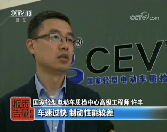 國家輕型電動車及電池質(zhì)檢中心 葉險:剛才我們這個試驗?zāi),是參照電動自行車國家?biāo)準(zhǔn)做的一個最高車速的試驗。這里呢我們剛才看到了,對比下來,電動滑板車的速度是明顯高于電動自行車的,電動自行車的車速為20公里每小時,也是符合現(xiàn)行的電動自行車國家標(biāo)準(zhǔn)的一個速度,而電動滑板車的速度已經(jīng)達到30公里每小時。