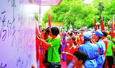 江西省遂川縣舉行“紀念抗日戰(zhàn)爭勝利七十三周年暨萬人簽名儀式”活動,教育和激勵人們銘記歷史、珍愛和平、熱愛祖國。光明圖片/視覺中國