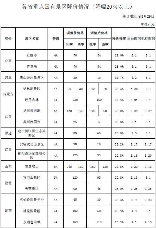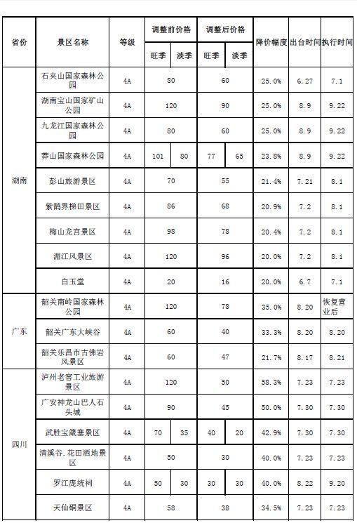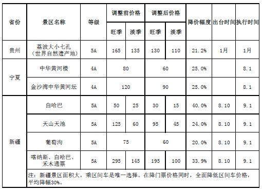哪些景區(qū)降價?
