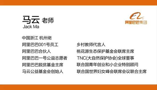 同時,馬云的新名片曝光。其中,馬云名字后緊跟“老師”稱謂,眾多頭銜中并未出現(xiàn)“董事局主席”字眼。