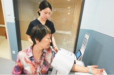 北京首家互聯(lián)網(wǎng)醫(yī)療全科中心的醫(yī)護(hù)人員在為市民測(cè)量血壓和脈搏。龍 巍攝 (人民圖片)