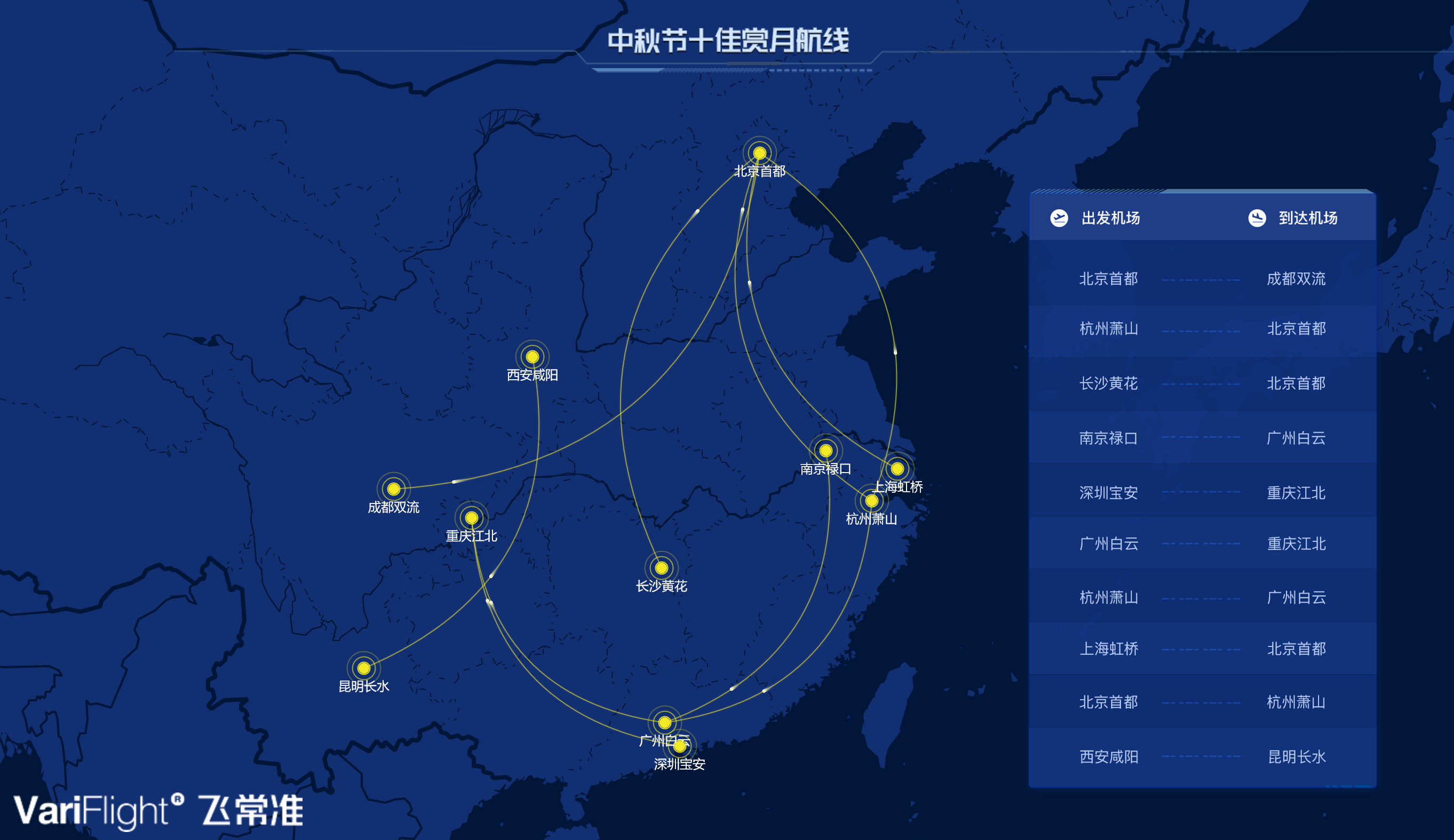 值得注意的是,十佳賞月航線中有5條往返北京首都機常