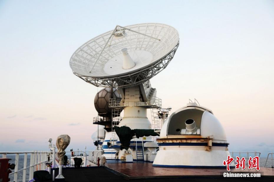遠(yuǎn)望3號(hào)船高聳的雷達(dá)天線2。 亓創(chuàng) 攝