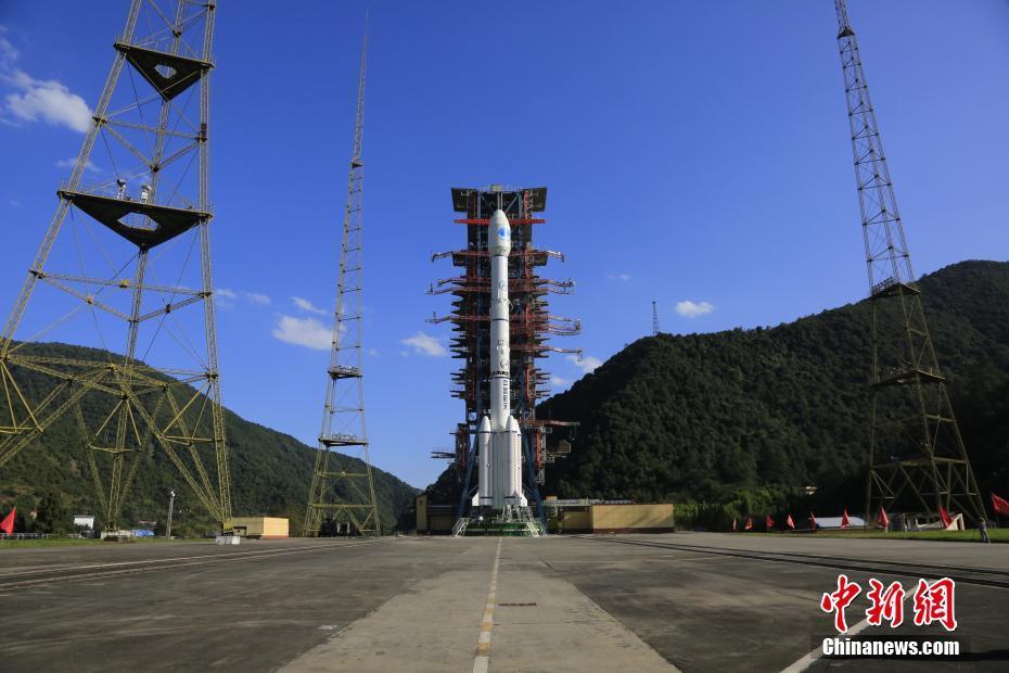 11月1日深夜23時(shí)57分,中國(guó)在西昌衛(wèi)星發(fā)射中心用長(zhǎng)征三號(hào)乙運(yùn)載火箭,成功發(fā)射第41顆北斗導(dǎo)航衛(wèi)星。這顆衛(wèi)星屬于地球靜止軌道衛(wèi)星,是中國(guó)北斗三號(hào)系統(tǒng)第17顆全球組網(wǎng)衛(wèi)星,也是北斗三號(hào)系統(tǒng)首顆地球靜止軌道衛(wèi)星。圖為衛(wèi)星發(fā)射前,星箭組合體蓄勢(shì)待發(fā)。 中新社發(fā) 史嘯 攝